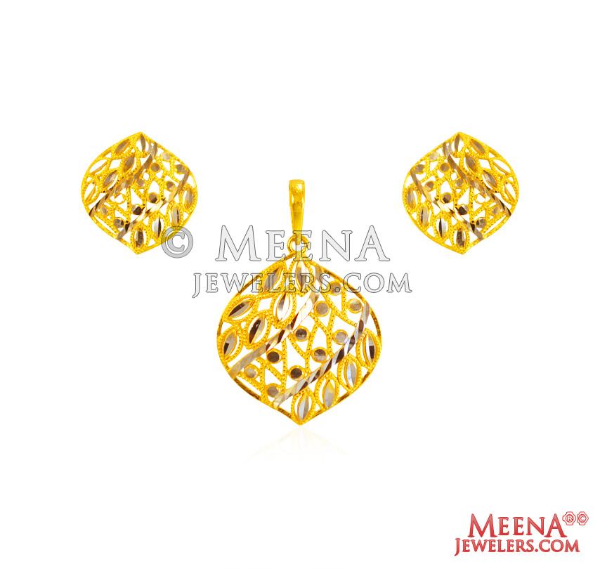 22Kt Gold Fancy TwoTone Pendant Set - Click here to buy online - 1,396 only..