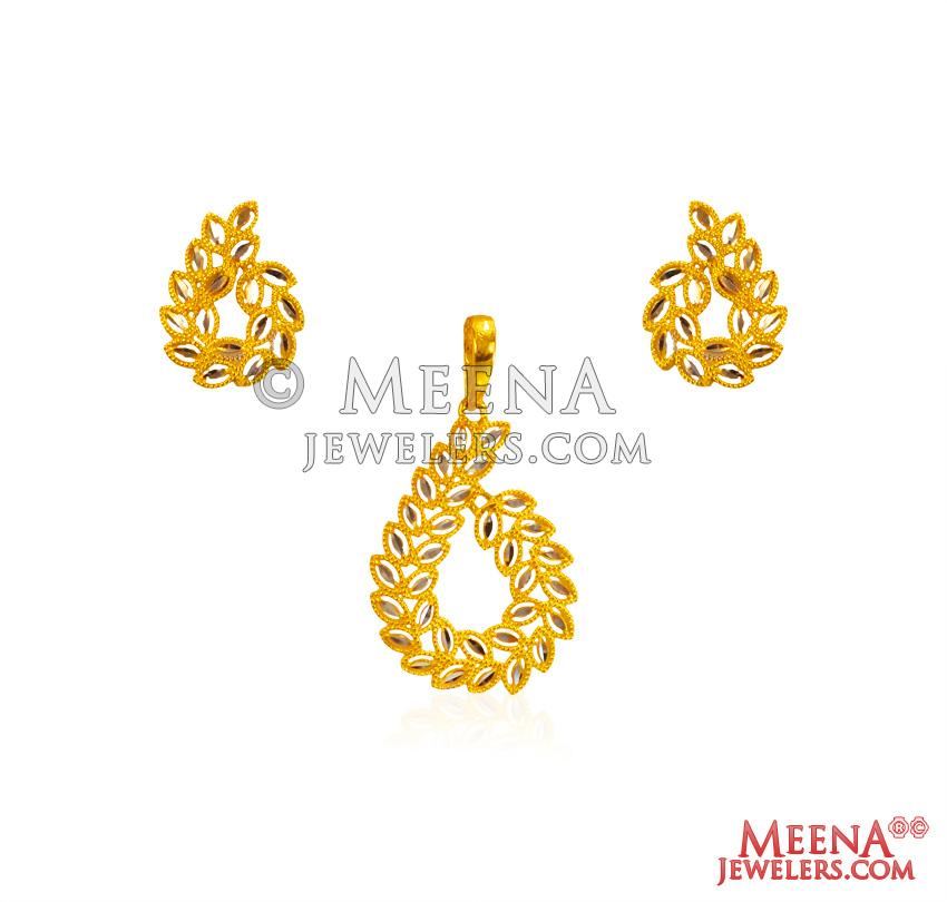 22Kt Gold Fancy TwoTone Pendant Set - Click here to buy online - 997 only..
